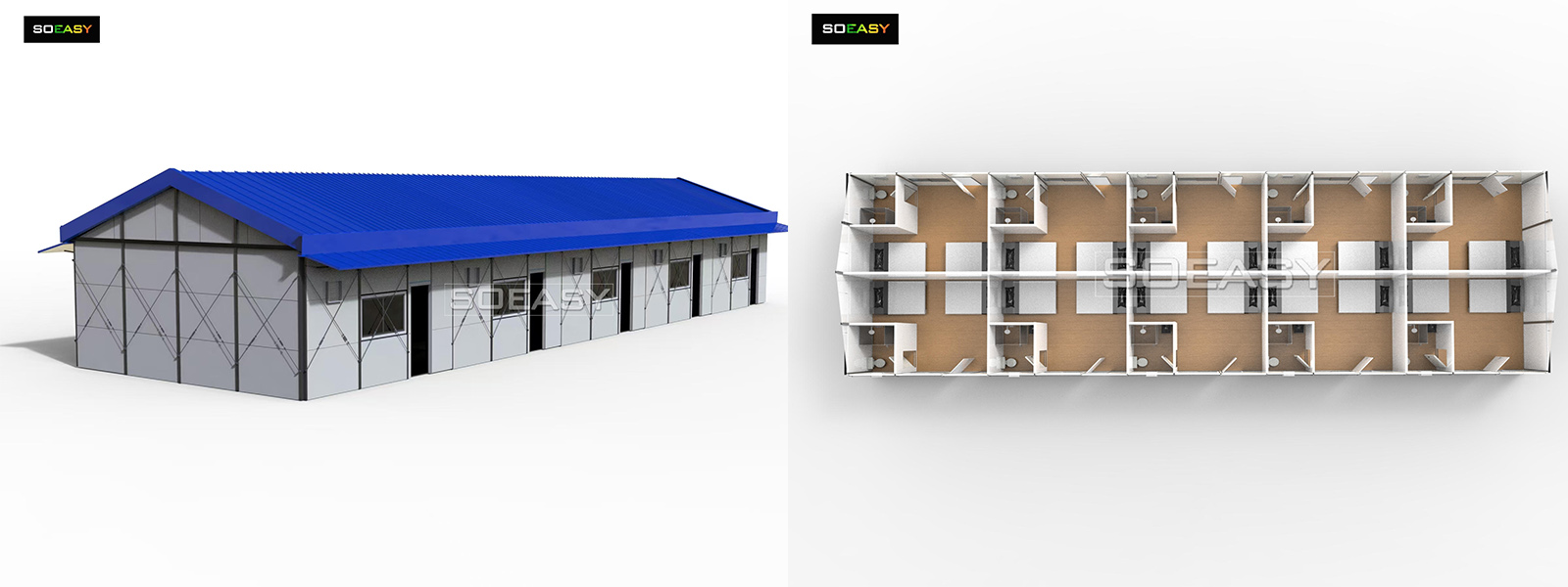 تصميمات قابلة للتخصيص بالكامل: من جهاز صغير المهجع من مكتب موقع واسع، تتكيف هياكلنا مع احتياجاتك. نقوم بتخصيص الحجم والتصميم بناءً على عدد القوى العاملة لديك ومتطلبات التشغيل، مما يضمن لك معسكر العمل تم تحسينه من حيث الأداء الوظيفي.